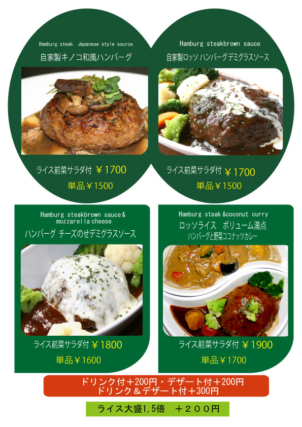 釧路市中心街のカフェ・喫茶店・レストラン カフェ&レストラン ロッソ 季節の野菜、旬の野菜でおもてなし English The menu